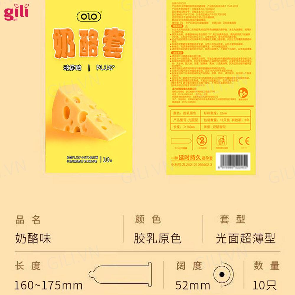 Bao cao su Olo Cheese Plus hộp 10 chiếc siêu mỏng, hương phô mai ngọt dịu tiêu chuẩn nội địa Trung giá rẻ tiết kiệm: