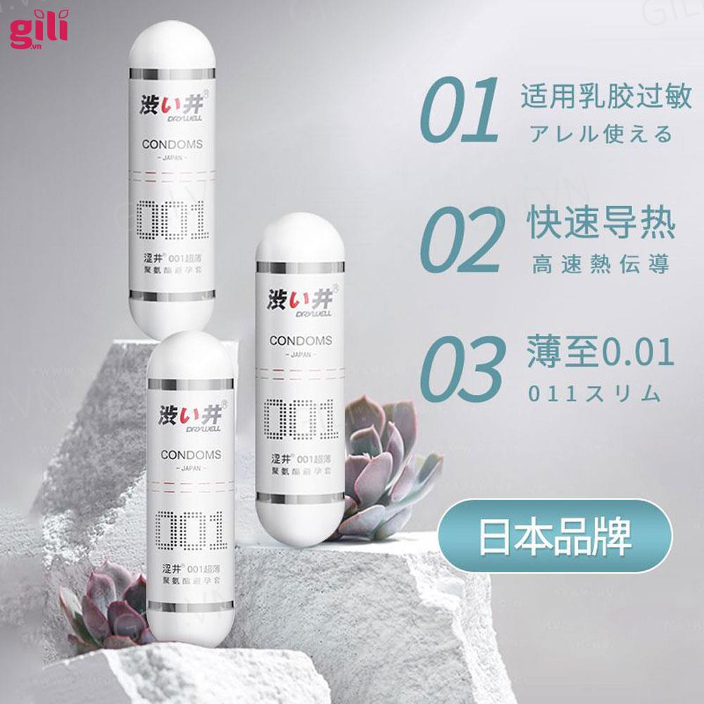 Bao cao su siêu mỏng DryWell Ultra Thin 001 7 chiếc tiêu chuẩn Nhật Bản giá rẻ tiết kiệm: