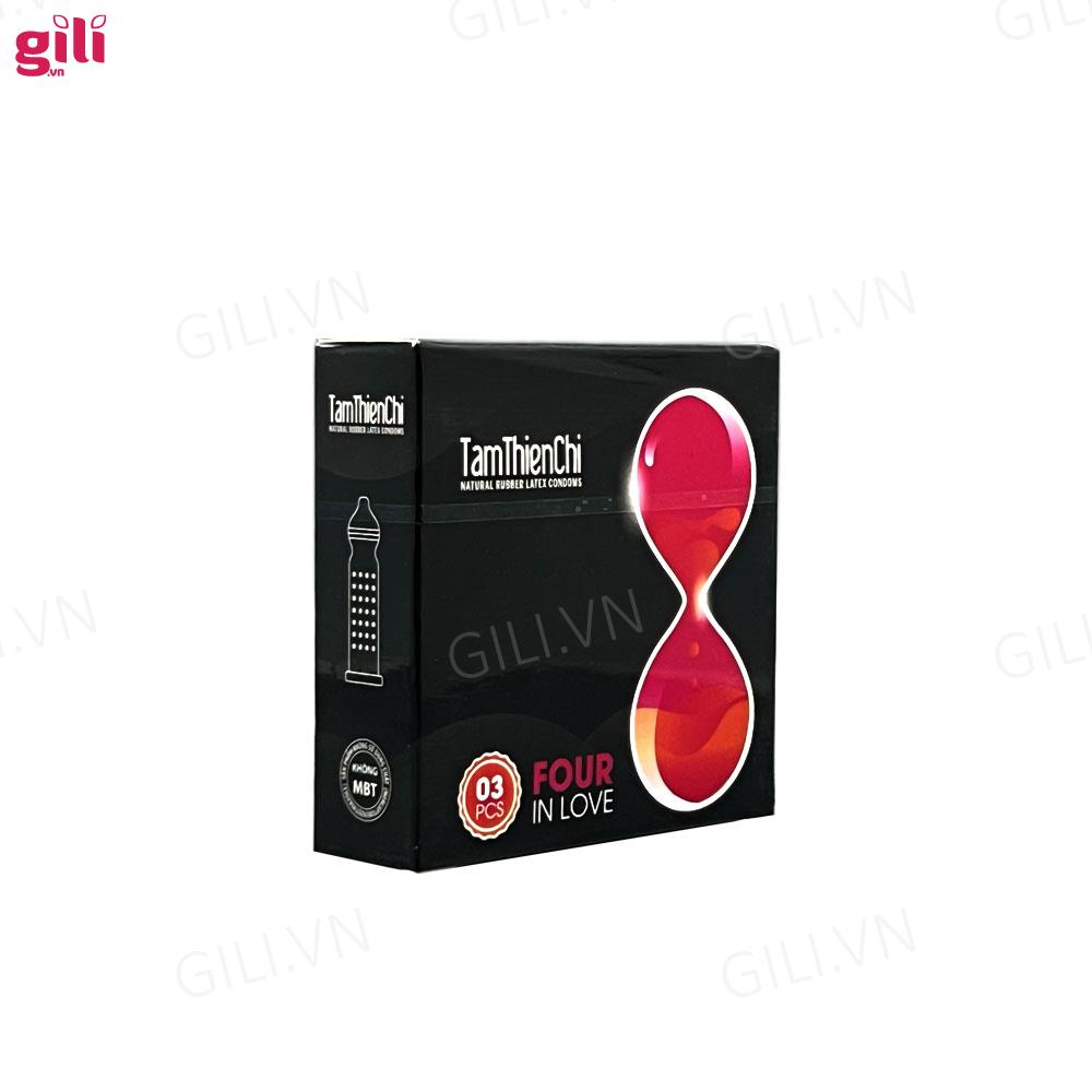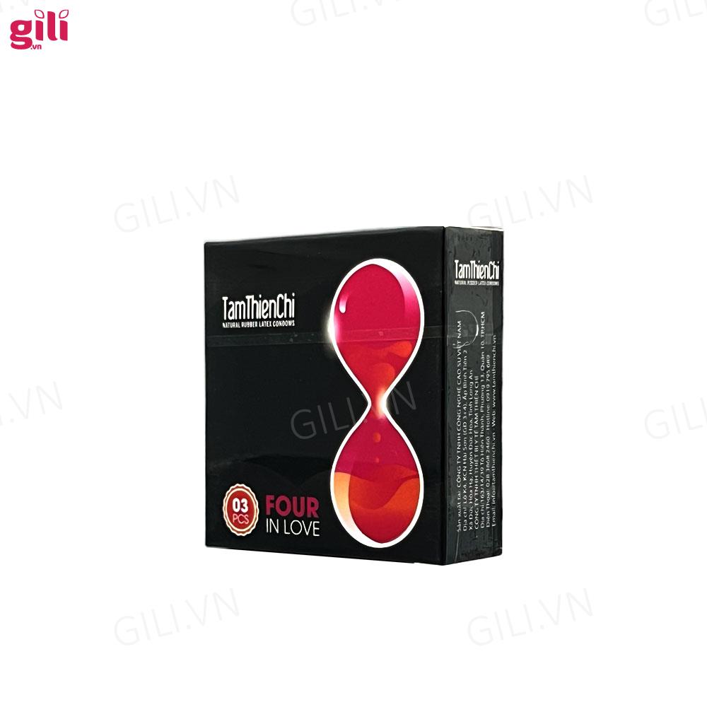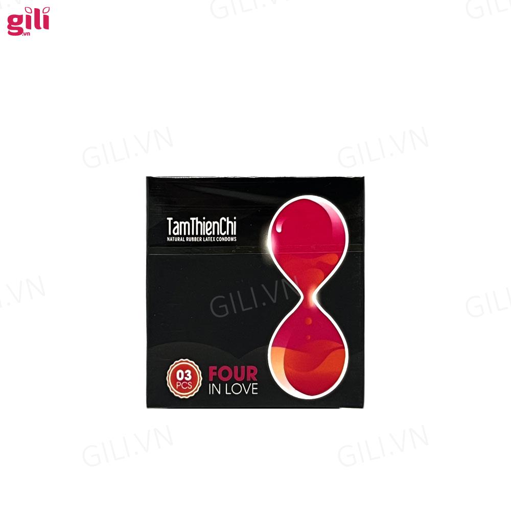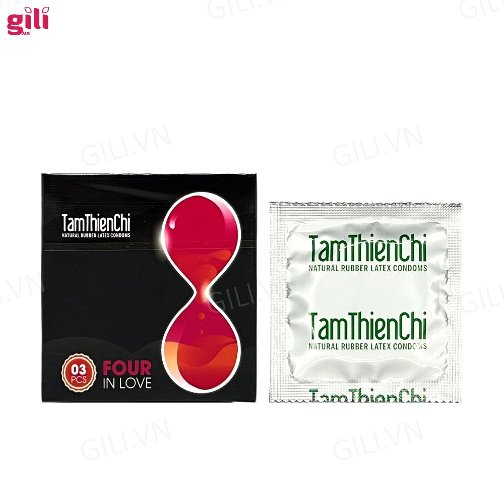 Bao cao su Tâm Thiên Chí Four In Love hộp 3 chiếc kéo dài thời gian tăng khoái cảm tiêu chuẩn Đức chính hãng giá rẻ tiết kiệm: