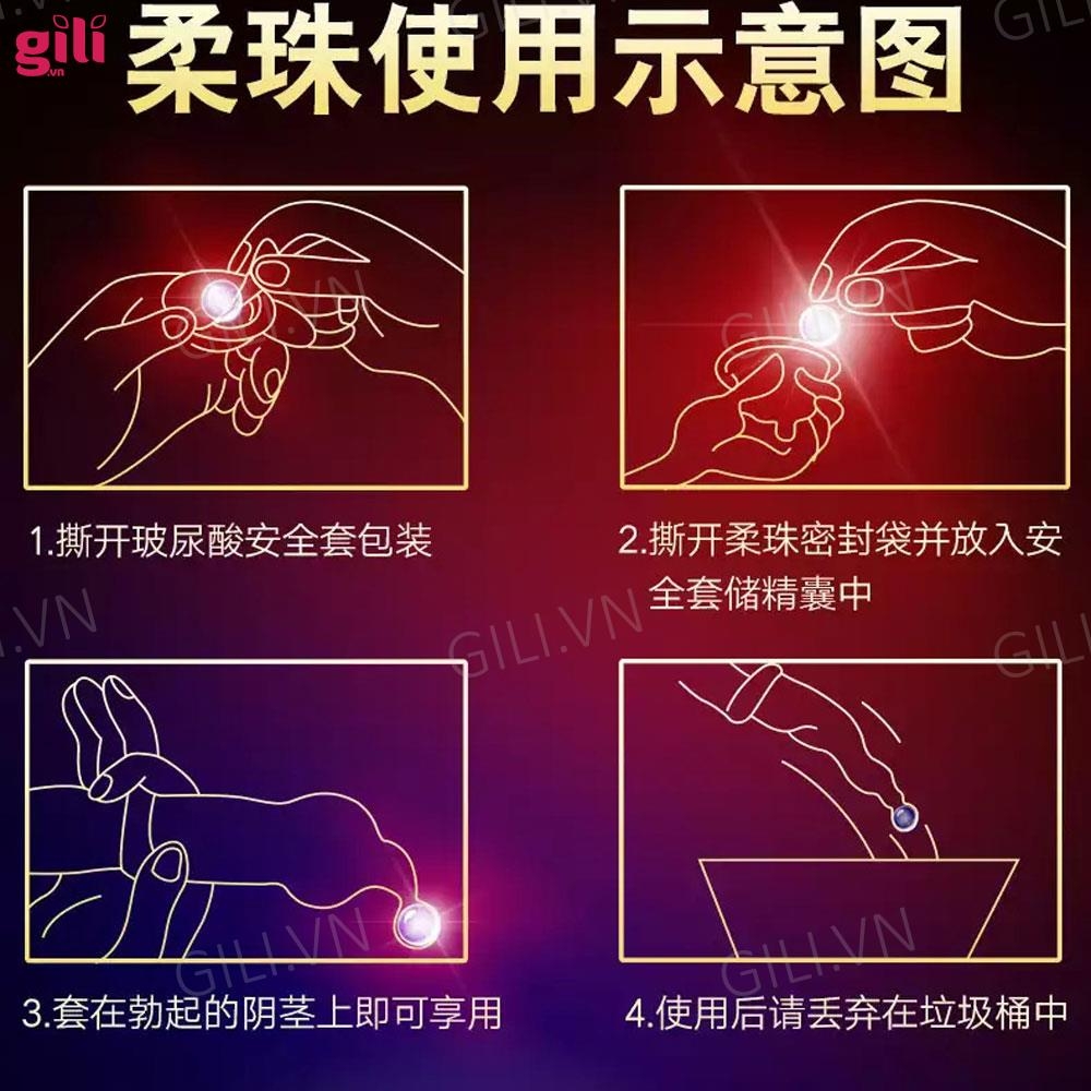 - Loại sản phẩm: bao cao su có viên bi 3cm, tăng chiều dài dương vật, tăng khoái cảm cho nữ giới.