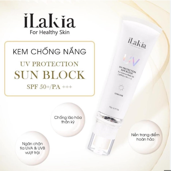 Kem chống nắng Ilakia UV Protection Sun Block SPF50+ PA+++ 70gr tiêu chuẩn Hàn Quốc chính hãng giá rẻ tiết kiệm: