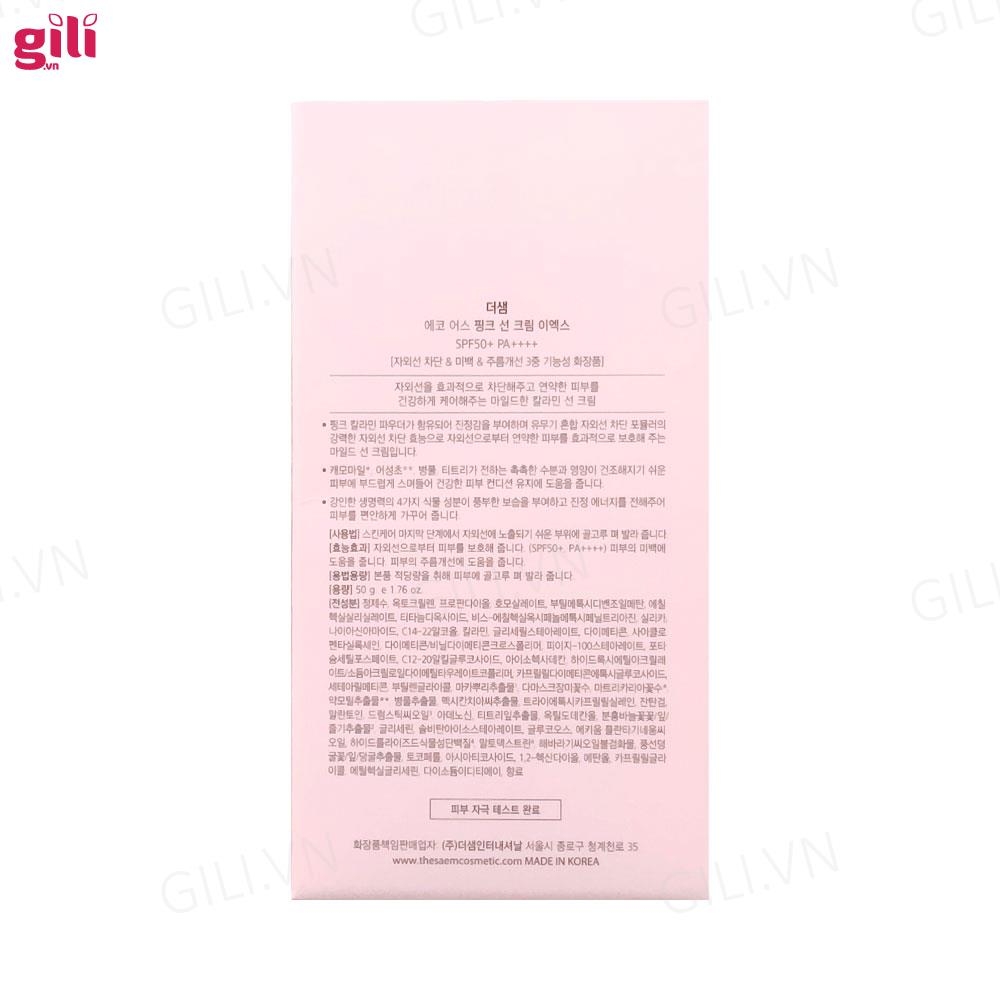 Cảm ơn bạn đã xem sản phẩm kem chống nắng The Saem Eco Earth Pink Sun Cream Ex 50ml tiêu chuẩn Hàn Quốc chính hãng giá rẻ tiết kiệm của Gili.
