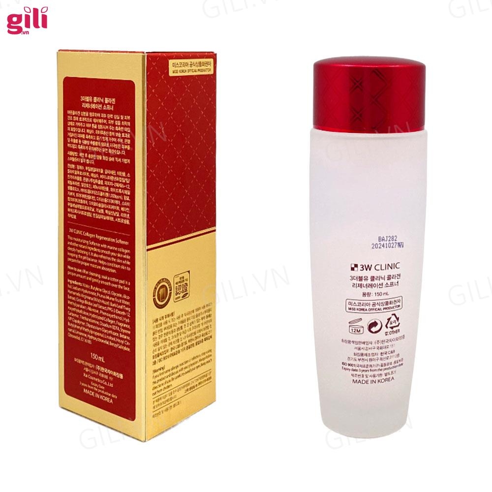 Nước hoa hồng 3W Clinic Collagen Regeneration Softener 150ml tiêu chuẩn Hàn Quốc chính hãng giá rẻ tiết kiệm:
