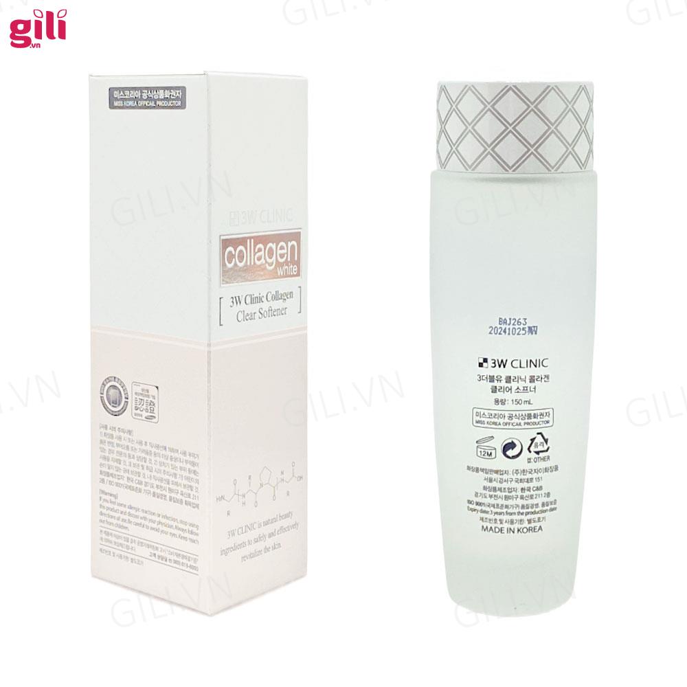 Nước hoa hồng 3W Clinic Collagen White Clear Softener 150ml tiêu chuẩn Hàn Quốc chính hãng giá rẻ tiết kiệm: