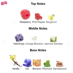 + Hương cuối: vani, cây hoắc hương, hạt dẻ cười, đậu tonka.