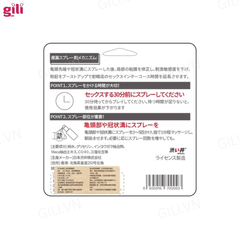 - Loại sản phẩm: xịt chống xuất tinh sớm, kéo dài thời gian quan hệ tiêu chuẩn Nhật Bản.