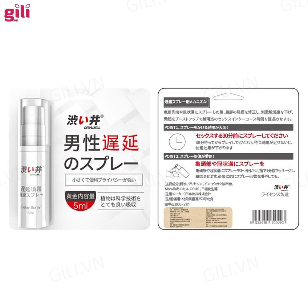 Xịt chống xuất tinh sớm Drywell Delay Spray 5ml tiêu chuẩn Nhật Bản chính hãng giá rẻ tiết kiệm: